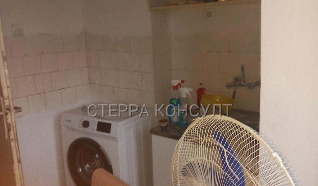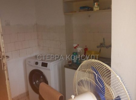 Блиндирана врата, насреща кухня с тераса и пералня. Коридор с дрешник, баня заедно с тоалетна. Преходен хол със спалня и телевизор и спалня с теракот и гардероб, навсякъде дограма, обща площ 59кв.м. От хола също излаз на терасата. Покрив ремонтиран, апартамента е освежен, има избено помещение 9кв.м.